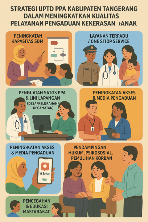 Kekerasan terhadap perempuan dan anak merupakan isu serius yang membutuhkan respons cepat, komprehensif, dan berkelanjutan. Untuk memberikan pelayanan yang layak dan efektif, Kabupaten Tangerang memiliki Unit Pelaksana Teknis Daerah Perlindungan Perempuan dan Anak (UPTD PPA) di bawah Dinas Pemberdayaan Perempuan dan Perlindungan Anak (DPPPA). UPTD PPA berperan sebagai garda depan dalam menerima pengaduan, melakukan pendampingan, dan menjamin pemulihan korban. Di balik setiap kasus kekerasan terhadap perempuan dan anak, terdapat luka yang dalam, harapan yang rapuh, dan kebutuhan mendesak akan perlindungan. Unit Pelaksana Teknis Daerah Perlindungan Perempuan dan Anak (UPTD PPA) Kabupaten Tangerang memahami bahwa setiap detik sangat berarti bagi korban yang membutuhkan pertolongan. Karena itu, komitmen untuk terus meningkatkan kualitas pelayanan pengaduan menjadi prioritas utama. Agar layanan pengaduan ini semakin berkualitas, UPTD PPA perlu menerapkan strategi yang sistematis dan terukur.