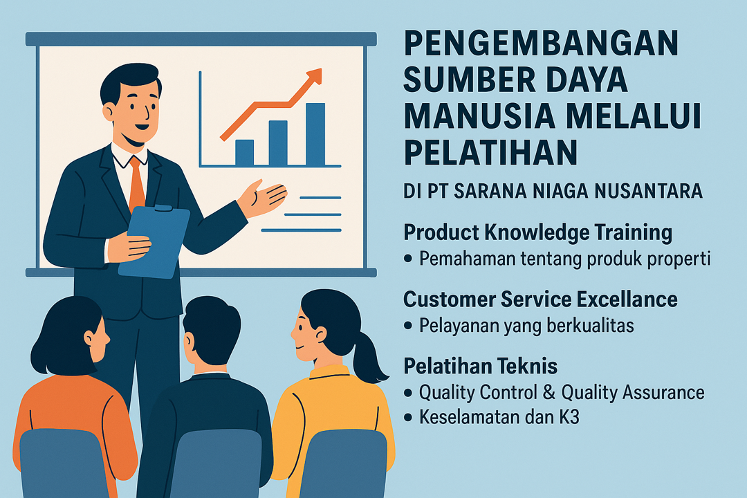 Oleh sebab itu, PT. Sarana Niaga Nusantara memberikan pelatihan kepada karyawannya untuk menghadapi persaingan dan perkembangan dalam dunia pengembangan properti seperti, Pelatihan Dasar Product Knowledge Training, yaitu Pemahaman mendalam tentang produk properti (tipe unit, bahan bangunan, lokasi, keunggulan kompetitif).