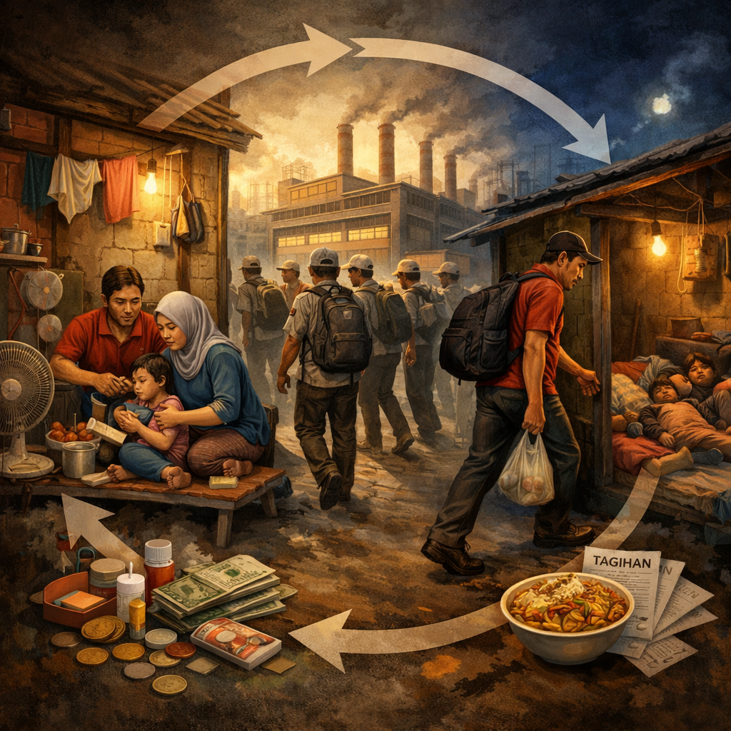 Setiap pagi, jutaan pekerja memulai hari dengan rute yang sama: dari kontrakan sempit menuju pabrik, lalu kembali lagi ke kontrakan yang sama saat malam tiba. Hari demi hari, tahun demi tahun. Tidak ada perubahan berarti, kecuali usia yang bertambah dan tenaga yang perlahan berkurang. Inilah realitas kehidupan sebagian besar pekerja di negeri ini—hidup yang berputar di satu lingkaran sempit: kontrakan–pabrik–kontrakan.